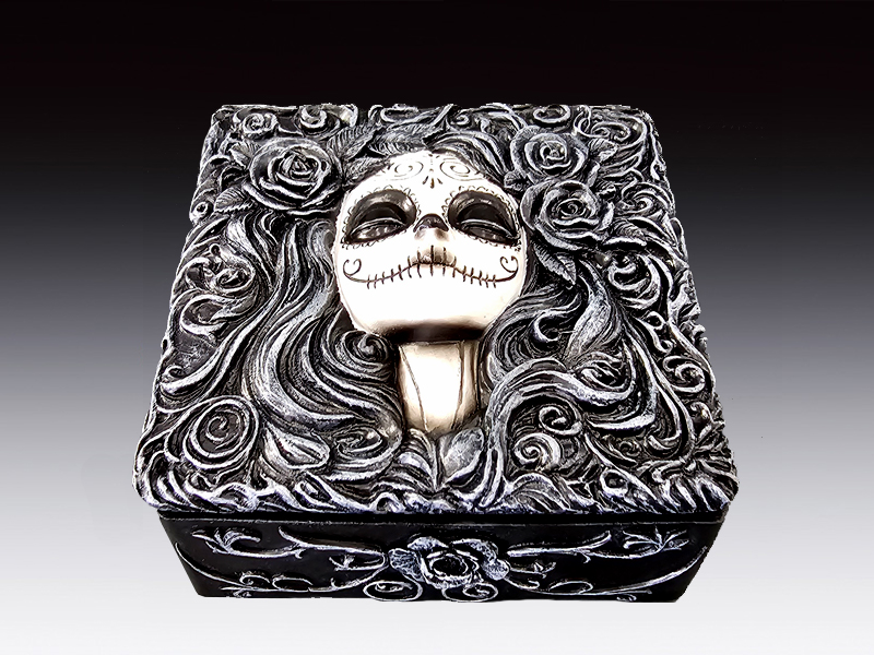 • Day of the Dead Lady – Features a beautifully sculpted lady adorned with iconic sugar skull makeup and floral details.