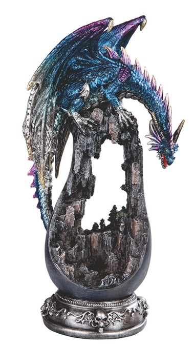 Unleash the mystic power of the legendary blue dragon perched atop the Arch Canyon. This 11.75-inch figurine showcases a stunningly detailed dragon with vibrant blue scales, its wings spread wide as it gazes over a rocky arch. The intricate design and bold colors make it a captivating centerpiece for any collection, evoking a sense of awe and adventure.