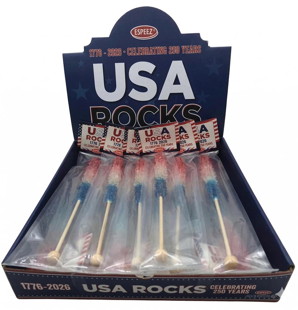 Celebrate in sweet, star-spangled style with our NEW Patriotic Tie Dye Rock Candy Stick (60g)! Bursting with delicious strawberry and blue raspberry flavor, this eye-catching treat features vibrant red, white, and blue swirls—perfect for commemorating 250 years of the USA. Whether you're gearing up for summer parties, patriotic events, or festive retail displays, this colorful candy stick is a must-have to add fun and flavor to any celebration.
