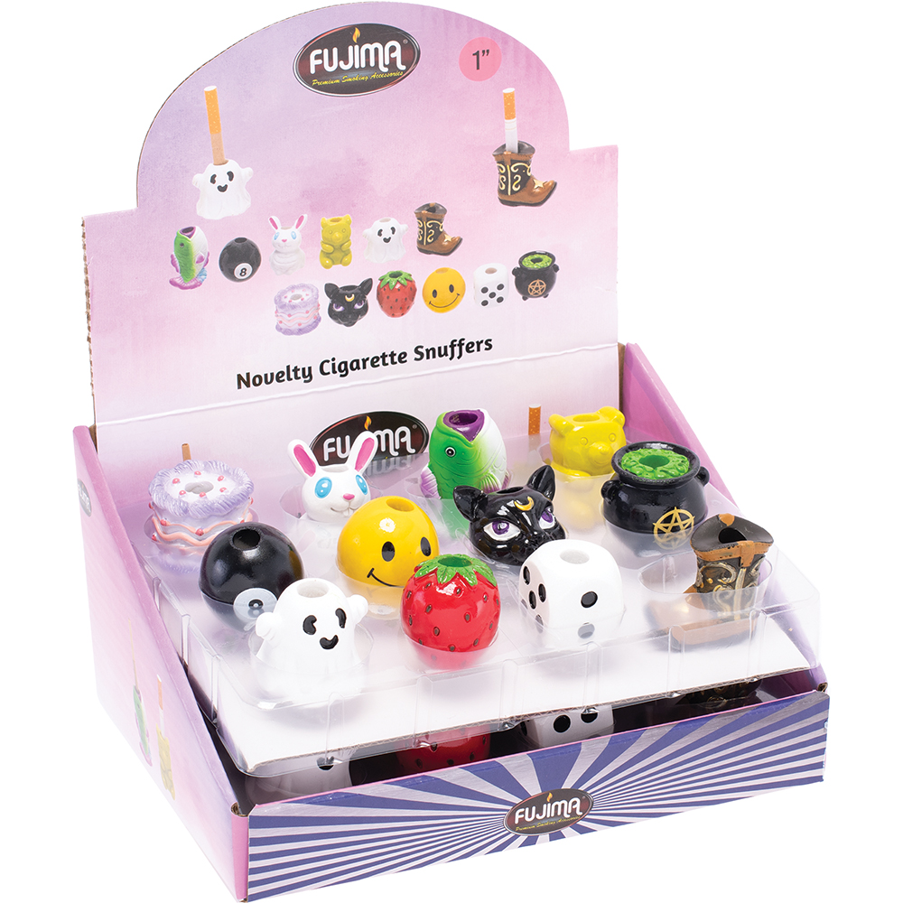 Add personality to your smoking setup with Novelty Character Snuffers. Featuring fun and quirky designs, these functional snuffers are perfect for collectors or as conversation starters. Comes in a PDQ24 display for easy retail placement.